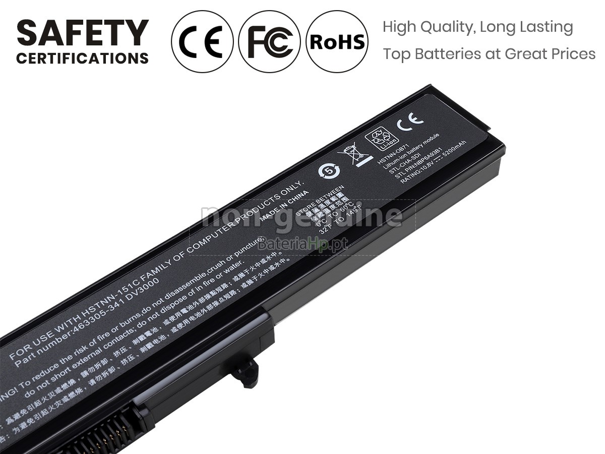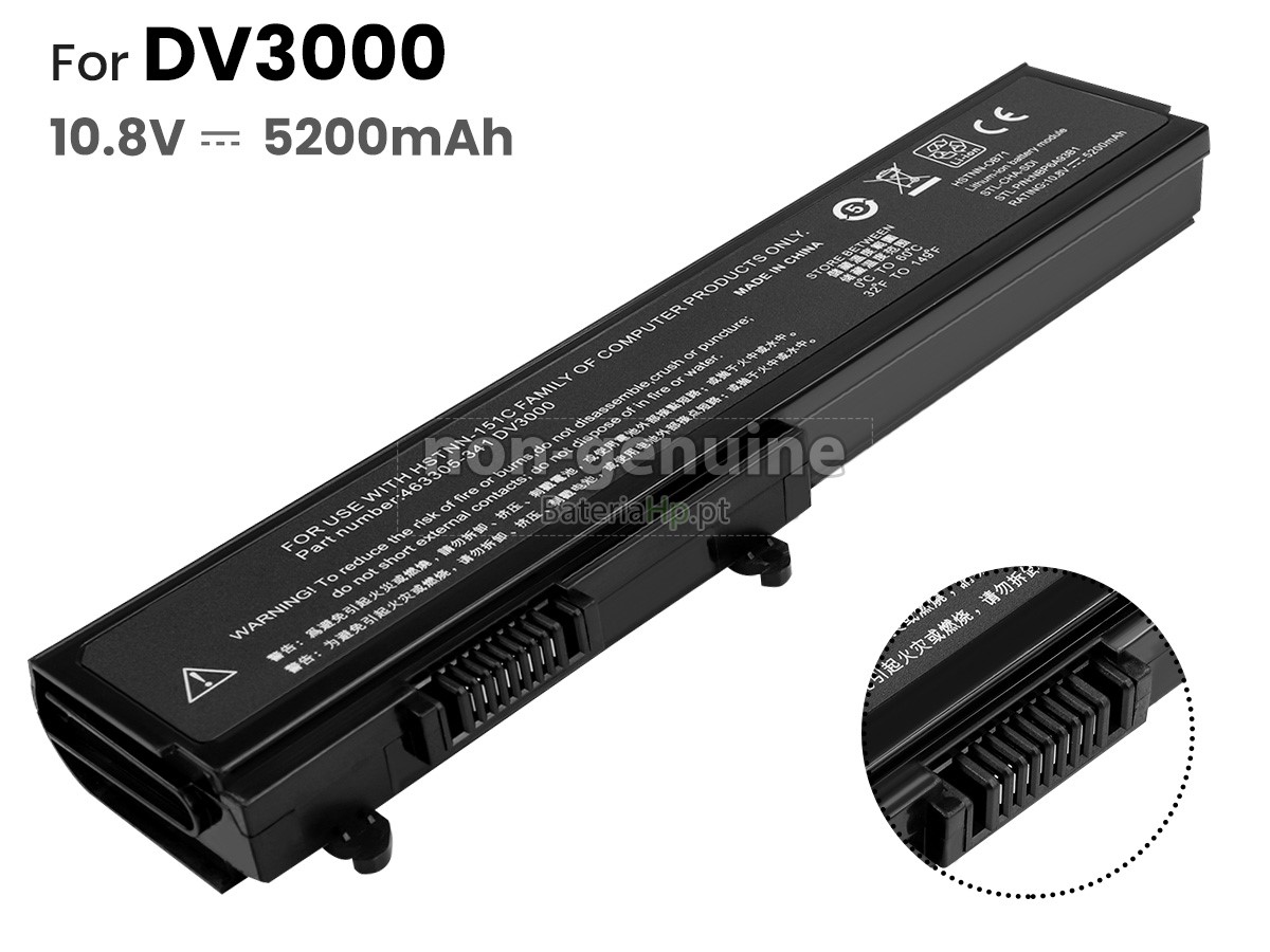 A HP Pavilion DV3000/CT bateria é modelada a partir da versão original, cujo tamanho é idêntico à bateria original, com compatibilidade precisa, melhor encaixamento e instalação mais fácil.